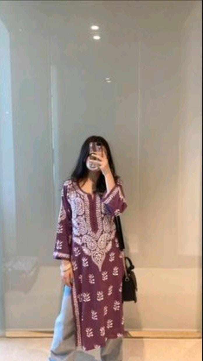 After 20 minutes A girl came out of the bathroom with a towel wrapped around her body, went into the closet and wore a mulberry pink color chicken kurti with wide jeans, kept her hair open and put silver earrings in her ears, she quickly got ready and went downstairs where everyone was sitting on the dining table and having breakfast.